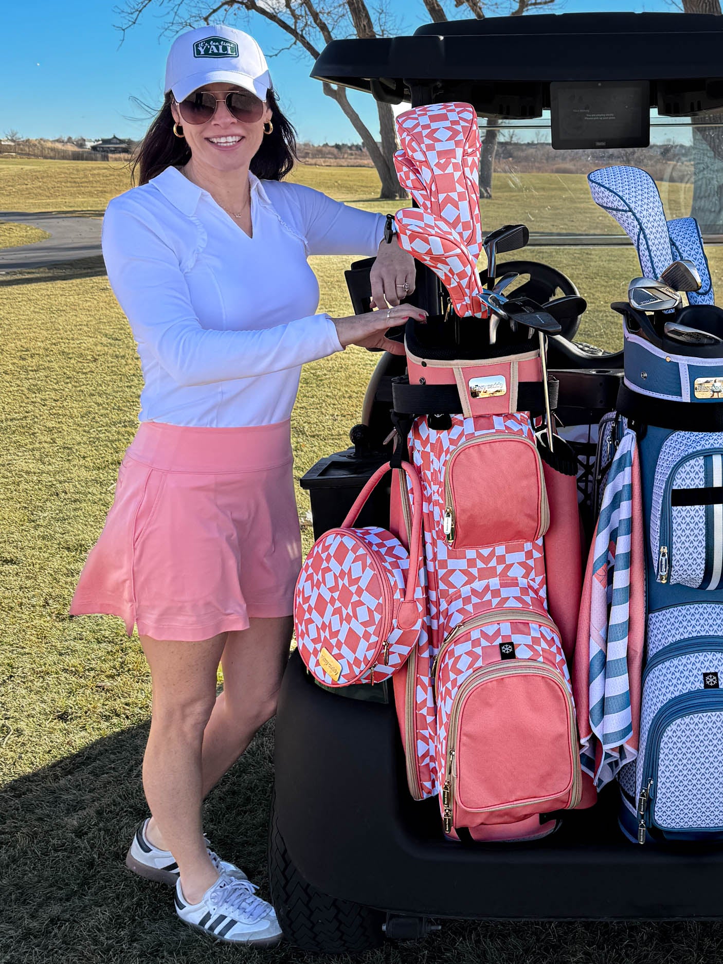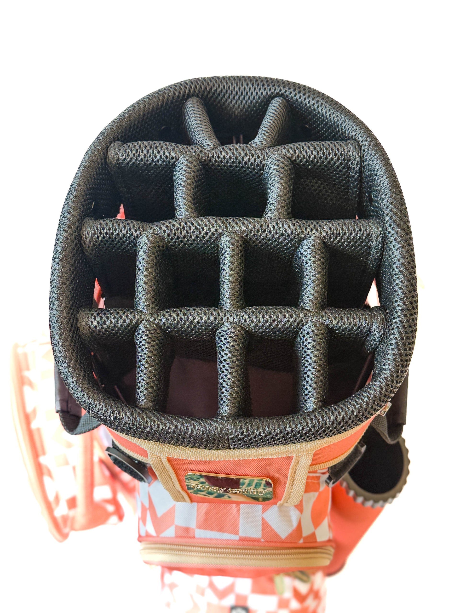 The Lancaster Lightweight Bag features a stunning coral geometric print and tips the scales at just 5.5 lbs—so light you'll forget it's there. Perfect for golfers who want maximum style and minimal weight.