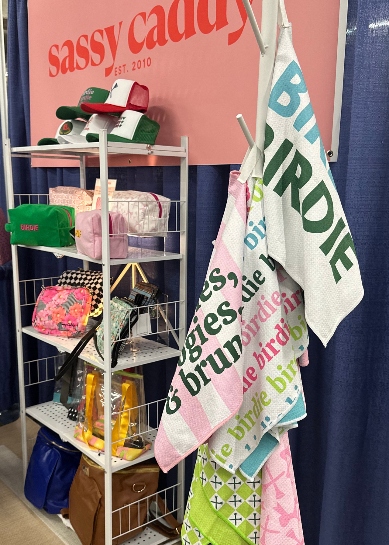 We have an excellent and unique tournament program. Our packages allow your guests their choice of design. For example, if you have 40 ladies playing in an event, we can send you more than 60 products (sets of head covers, towels, purses, totes, etc.) in all our available designs. If you have remaining items, simply send them back to us at no extra charge. Also, if you order 25 or more items, you’ll receive a 10% discount on your entire order.We can custom design our products so the fabric coordinates with your theme and we can add a logo to any item.
