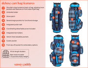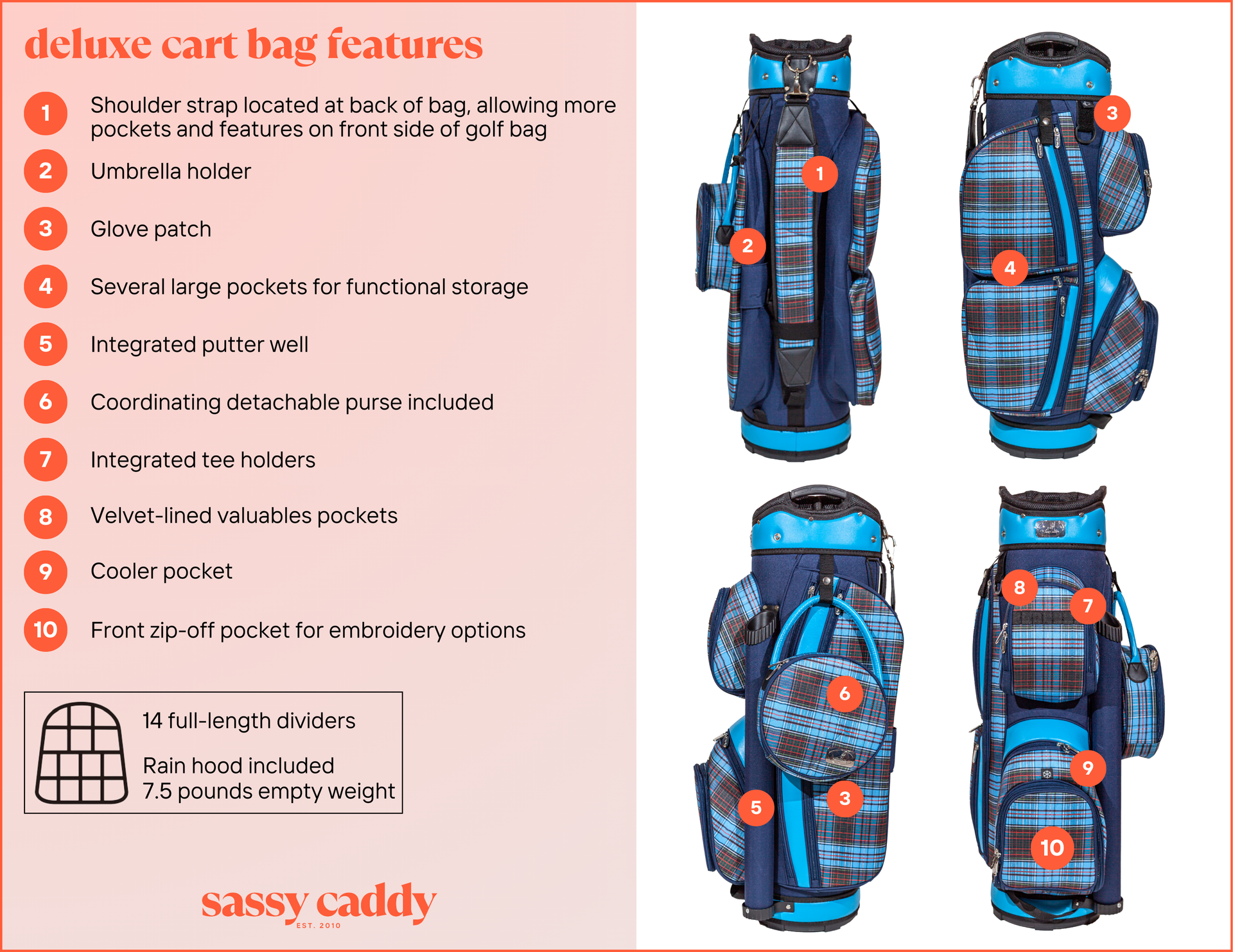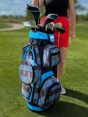 When we think of traditional golf attire, we think of plaid. So, we added an elegant blue and navy plaid golf bag to our collection. We topped it off with matching blue leather trim to really make this bag a masterpiece!